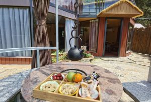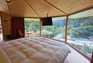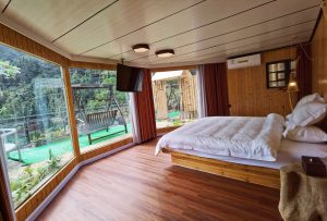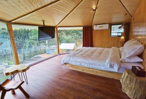 两房一厅,1.8米大床,总面积:120M²,设有私家水疗泡池,围炉煮茶